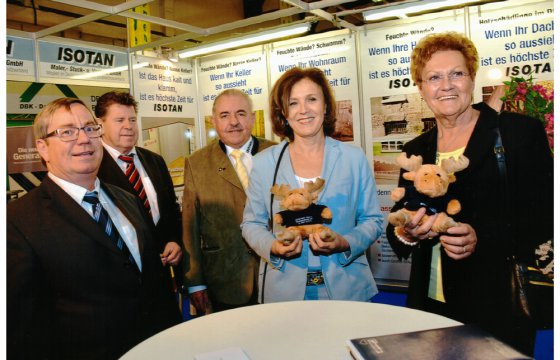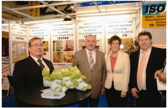 Das Isotan-Team mit der saarländischen Ministerpräsidentin Annegret Kramp-Karrenbauer, dem Präsident der Handwerkskammer Bernd Wegner und dem Geschäftsführer der Saarmesse Ralf Kirch
