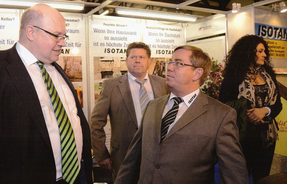 Peter Altmeyer, Kanzleramtschef und gebürtiger Saarländer, informiert sich am Stand der Isotan über das Leistungsangebot