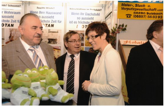 Prominente Gäste am Stand der Firma Isotan: Die Oberbürgermeisterin der Stadt Saarbrücken Charlotte Britz und die Ministerin für Familie, Gesundheit und Soziales Monika Bachmann