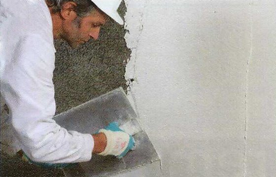Nach 24 Stunden wird der Sanierputz alt-weiß aufgebracht.